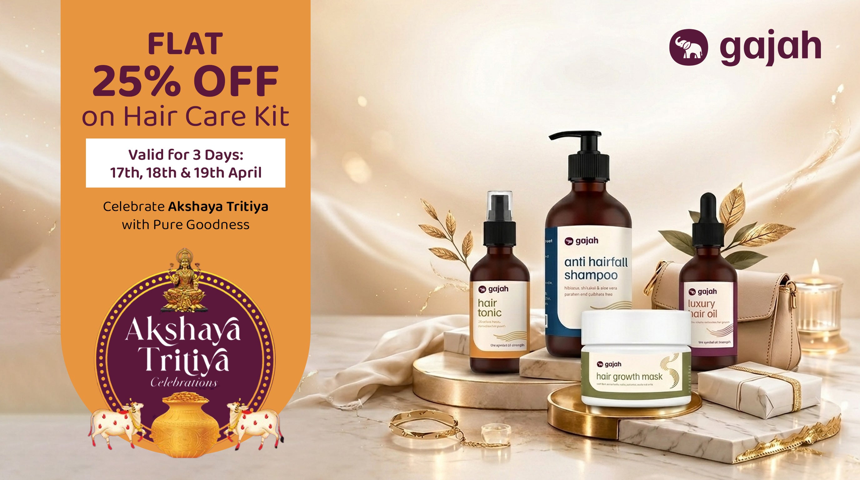 Gajah Hair Care Kit - Hair Tonic, Regrowth Hair Oil, Anti Hairfall Shampoo and Hair Mask
