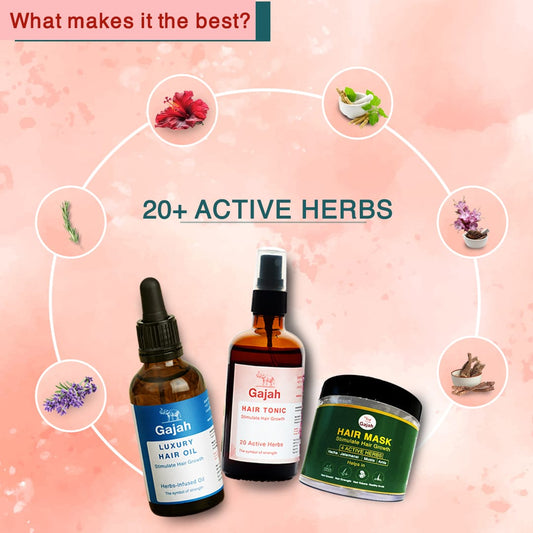 Gajah Hair Care Kit - Hair Tonic, Luxury Hair Oil, Anti Hairfall Shampoo and Hair Mask