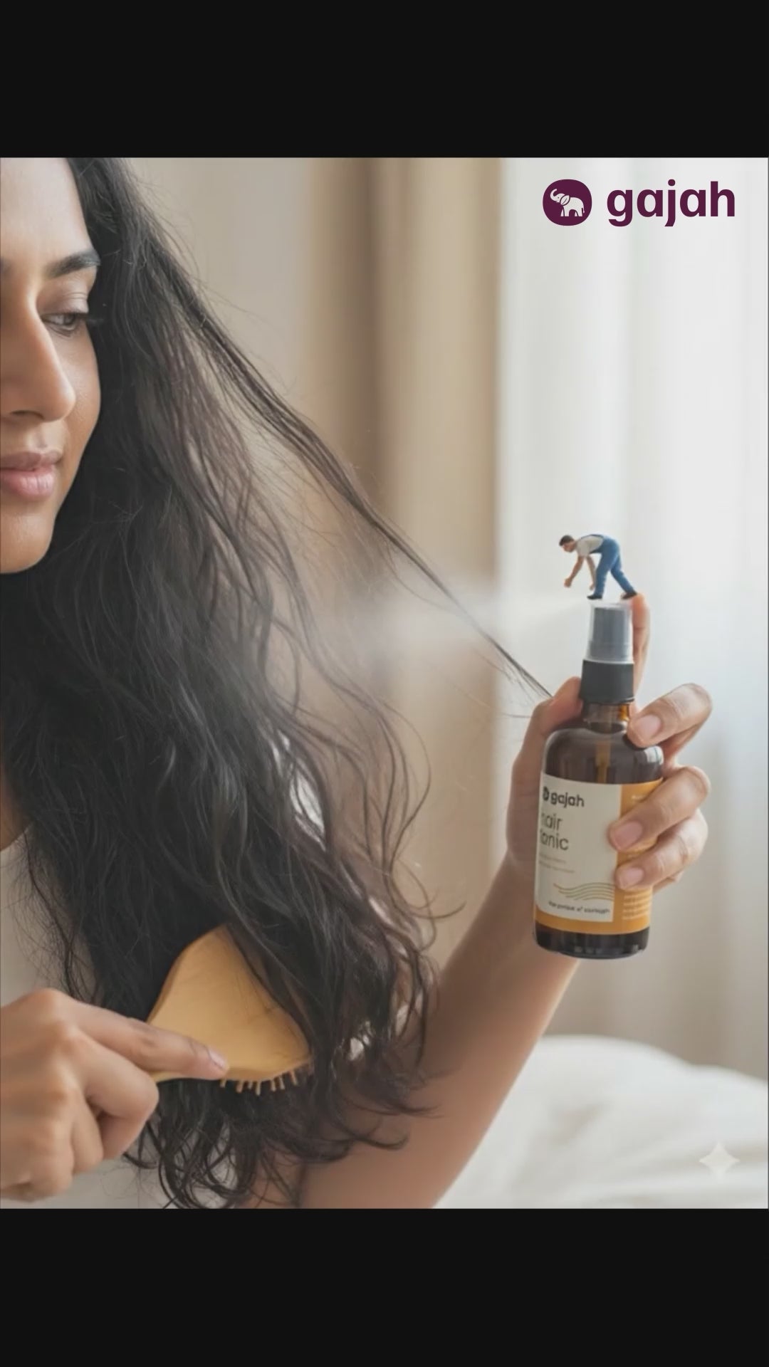 - If you don’t wash your hair daily then too spray Gajah: at the roots, comb and get in action. Gajah works best with wet hair as it allows the Gajah: tonic to spread in all hair roots.